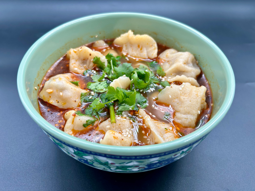 آرد گندم، گوشت چرخ کرده، کاهو چینی، کرفس، پیازچه، زنجبیل، سس سویا چینی، روغن کنجد چینی، ادویه های گیاهی چینی، سرکه برنج چینی، سس چیلی چینی، گشنیز، کنجد، بادام زمینی