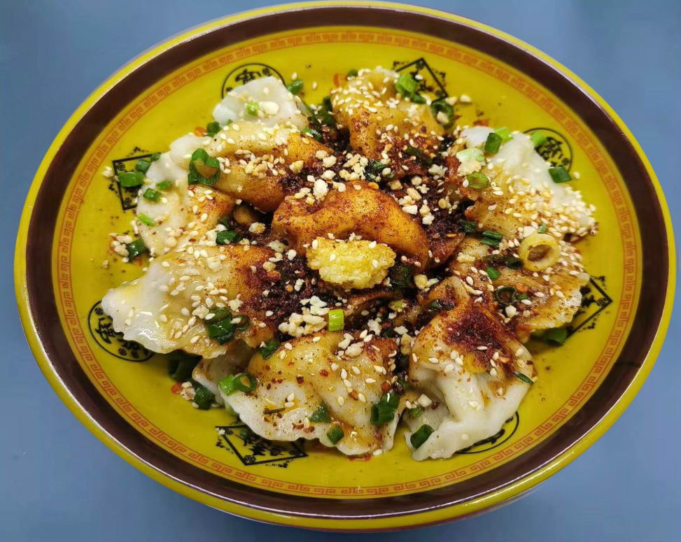 آرد گندم، گوشت چرخ کرده، کاهو چینی، کرفس، پیازچه، زنجبیل، سس سویا چینی، روغن کنجد چینی، ادویه های گیاهی چینی و سیر